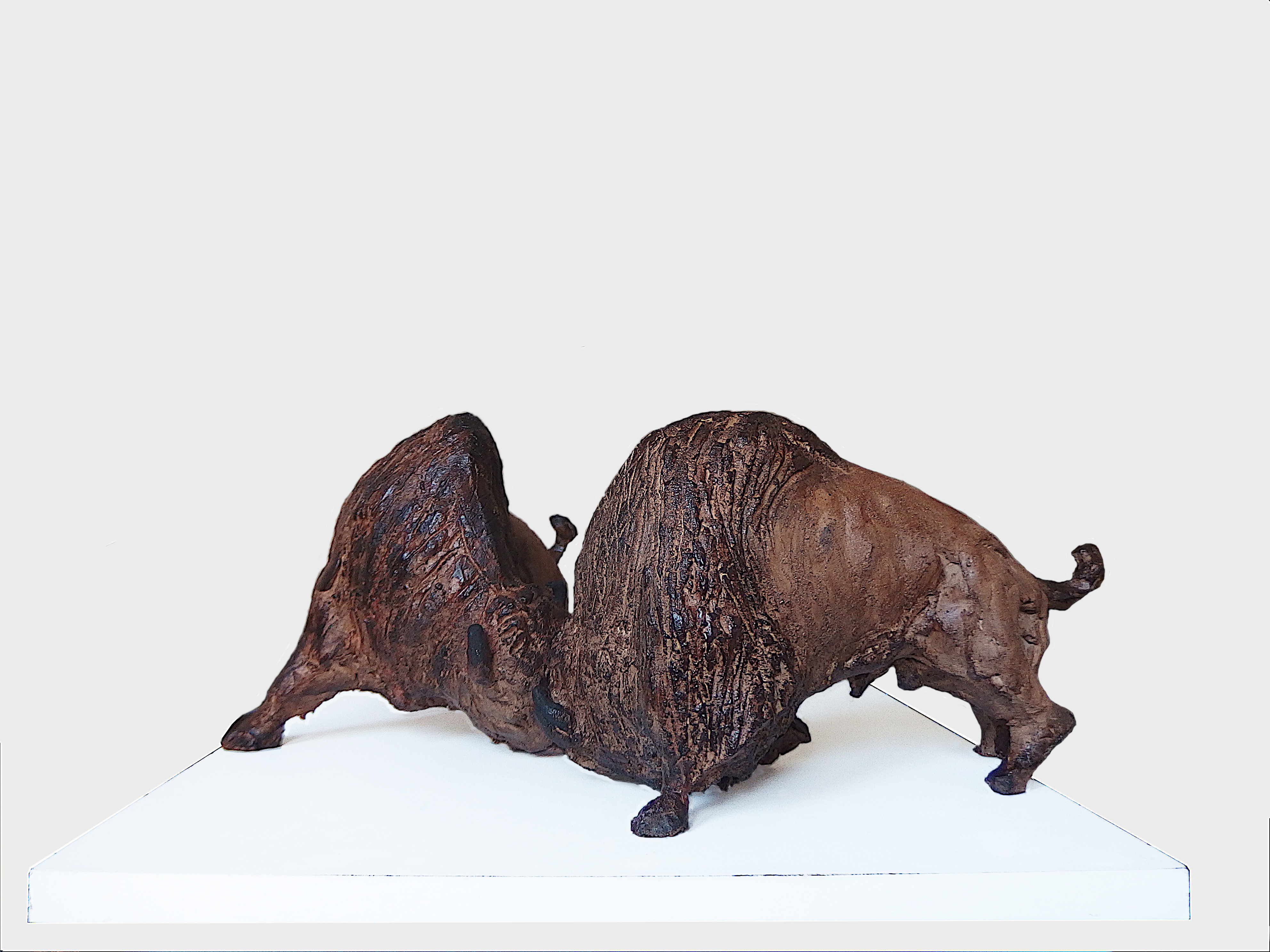 Buffalo fifht (H20 X L35 X P38) Terre cuite, , Pièce unique |